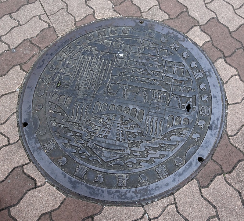 0056a Previous Next Veröffentlicht 2. Februar 2019 in 800 × 724 in Japan – Tag 7: Tagesausflug Osaka – Schloss Osaka, Shinsekai „New World“ und Dotonbori-Flussufer Gullideckel in Osaka